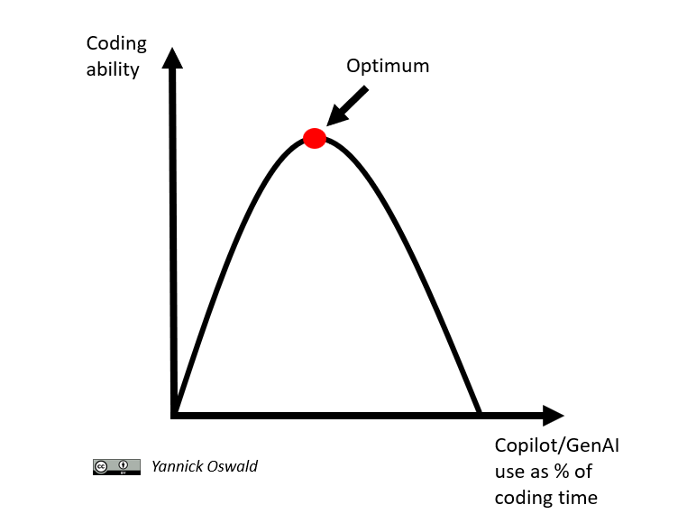 All in all, the gist of my current view is that there is an optimum of using GenAI for coding. Amplify your skills, but do not erode them by using GenAI. It is about staying sharp through controlling all key elements of your code as well as regularly turning of all GenAI and going for little training sessions. Let me know your suggestions for best practices!